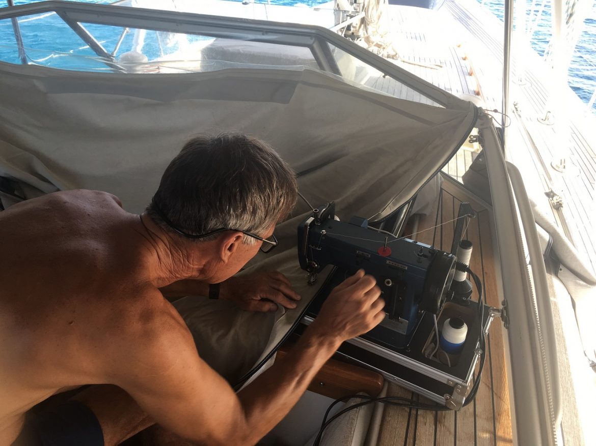 Back on Cloudy Bay, I oil and pack away the sewing machine, but not before one last task: few stitches on the spray top. Then I run the spinnaker lines on deck while Oana finalises and posts the first Jamaica video. All sorts of small jobs to be done. Seems ages since we actually moved, let alone sailed!