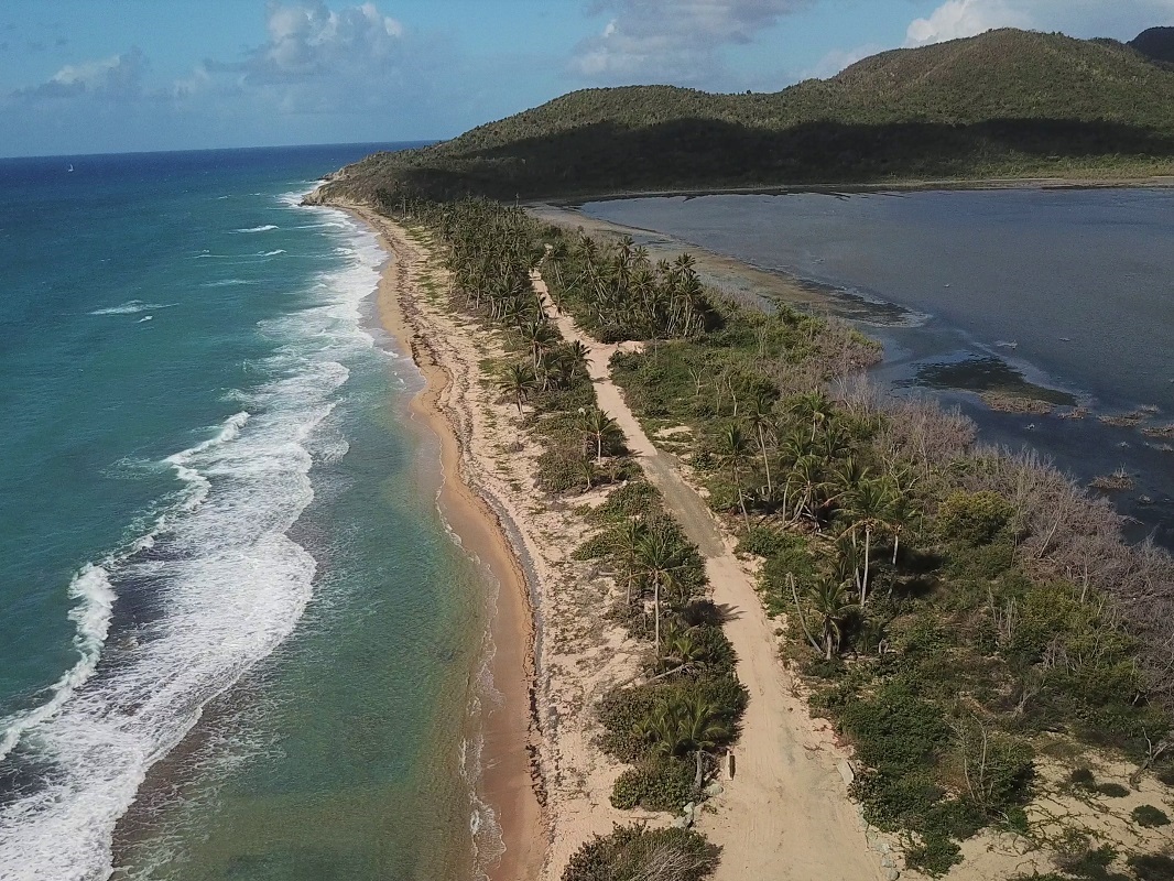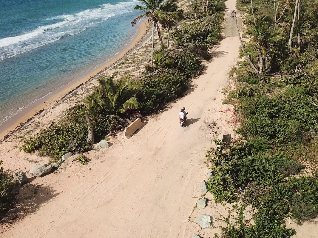 Armed with the drone we head back to the south-west coast to get the aerial view of the beautiful long beach there and the avenue of palm trees. This is one of our favorite spots on Vieques, we could ride the scooter all day in this wilderness. Again, not a soul about in the area.